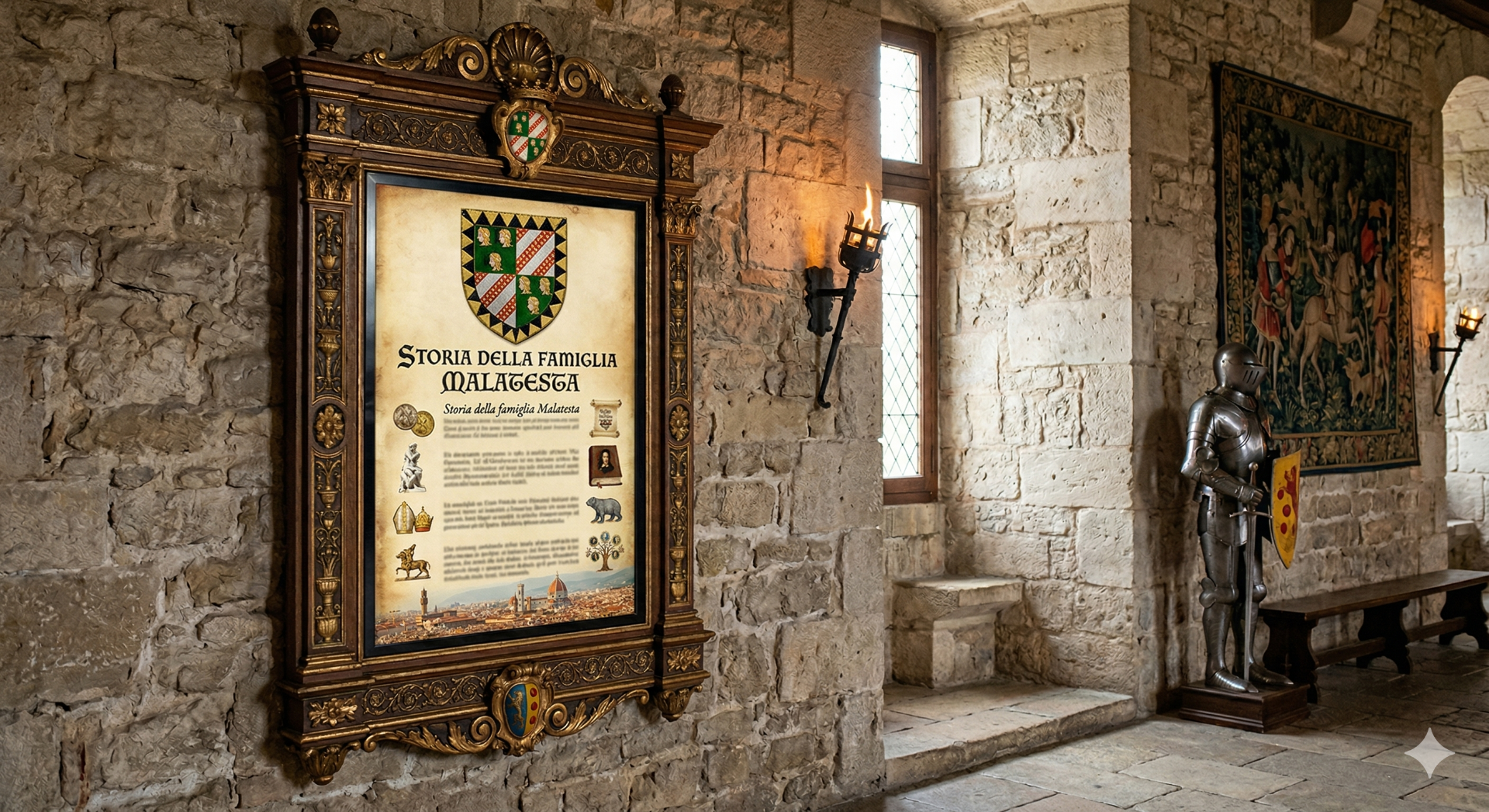 Lo stemma di famiglia può essere anche esposto nei pannelli informativi sulla famiglia in musei o dimore storiche.