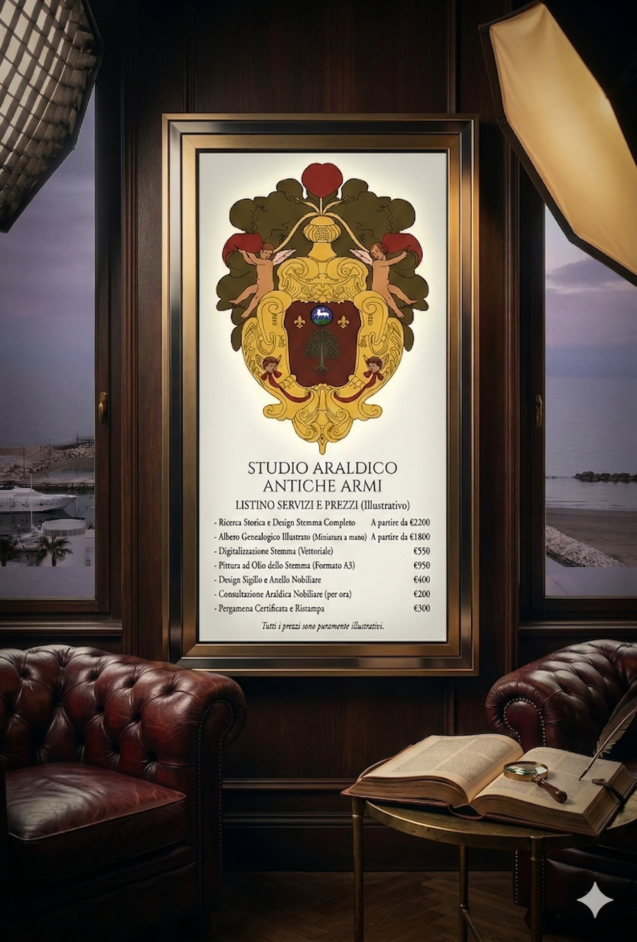 Il servizio è pensato per chi desidera un’immagine araldica coerente e professionale: famiglie che vogliono presentare il proprio stemma con dignità, studi professionali e notai che necessitano di un’identità visiva autorevole, enti pubblici e privati, confraternite, associazioni e ordini cavallereschi che richiedono un uso corretto e prestigioso dei propri simboli, ma anche musei dove esporre la storia araldica del luogo o dimore in cui esporre pannelli informativi digitali di famiglie o di negozi per esporre banner informativi dei proprio servizi.